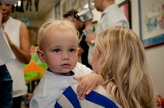 When I was about 6 weeks pregnant, I went to lunch with a close friend and told her the good news. Her response? You need to call Jackie and get on her list IMMEDIATELY! One might think this list has something to do with pregnancy, or learning about having a baby. But no, this is a mommy and me class that we wouldn't start until my baby (which was currently the size of a sesame seed) was three months old. Such is the life of an LA mom. So I made the call, got on the "list" and told Alex to put her number in his phone. Because within a week of the baby being born Jackie was going to call us and confirm a spot, and if we missed the call or didn't return it fast enough we would lose our spot and it would go to one of the hundreds of moms on her waiting list. This is the premiere mommy and me class of LA, and I wasn't going to miss that call! All jokes aside, it turned out to be a wonderful experience for me and Baby Adam. From 3months old to 17months old, once a week we went to class with 10 other moms and their babies. All the babies were born within the same month, so when someone was going through feeding problems, first teeth, first time eating real food, first tantrums, the rest of the moms were going through it too. Jackie would chat for about 45 minutes about a specific topic (she has a background in early childhood development) while the babies played, then we would all sing songs. I can honestly say I learned something helpful each week. If nothing else, it was just great to hear other people going through similar issues and having someone tell us what to do. I didn't always listen to her advice, but often I did and I'm sure I will for many years to come. Last week, Adam graduated. It was so adorable. All these little babies all grown up, toddling to the front of the room in their "gowns," accepting their certificates, and sliding down the slide with 20 parents taking photos and videos with tears in their eyes.